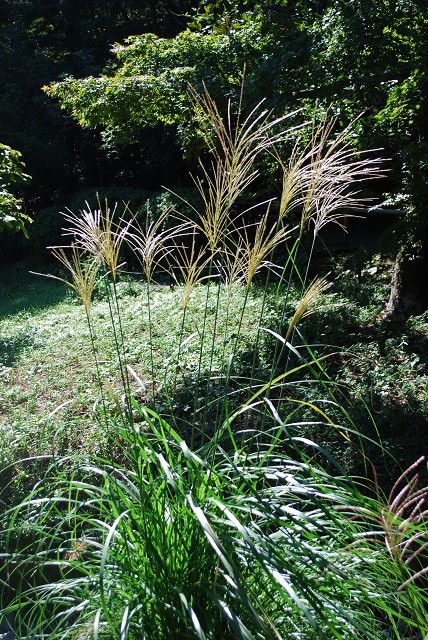 内苑は元当主, 原三渓さんの私邸であったエリア。 一言でいうと”瀟洒”。 こんなとこで酒でも飲みたいもんですわ。 (臨春閣という) この臨春閣からの眺めは, 京の桂離宮のそれとも比されるそうです。 (襖絵は狩野ナントカさん ^^;) 他にも徳川家康時代の伏見城内にあった大名控え室や, 織田有楽斎作の茶室があったり見所満載でした。 (こちらは聴秋閣) 家光・春日局ゆかりの楼閣建築だそうです。 名前もワビサビですねえ。 (秋の七草の一,ハギです) 前日の雨で大分花が落ちてしまっていました。 春の花と違い可憐な感じですね。 (同じく七草の一,ススキです) フラッと出かけただけでしたが, 思いがけず秋を感じられる楽しいお出掛けになりました。 横浜には見所がたくさんありますが, 少し足を伸ばすとこんな所もあるんですね。 季節ごとに楽しめるみたいなので, みなさんも一度お出掛けになってみれば? 今日もよい一日でした。