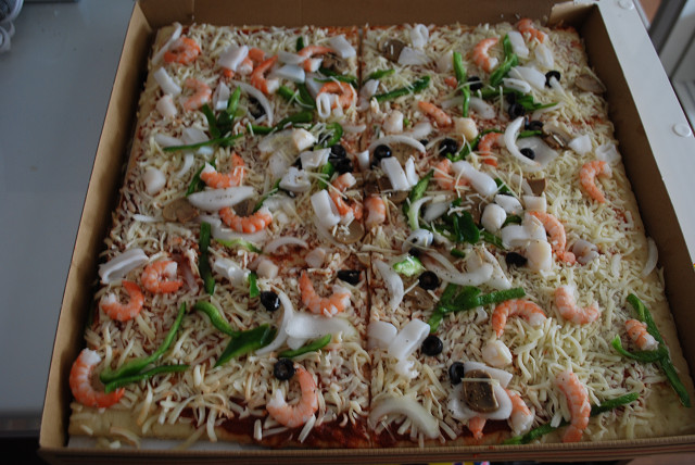 材木座まで行ったのに海を見てきませんでしたわ。 途中川﨑にある「コストコ」 という店に寄ってきました。 アホみたいにだだっ広い敷地に, 食料品から家庭用品まで色々売っています。 こういう所に来るとテンション上がるね。 (上がるんかい!!) 見たことのないスパイスとか, 冷凍庫を占領しそうな食品とか。 パンが袋に36個入ってたり。 (うちは二人暮らしです) 肉はキロ単位で売ってたり。 (うちは二人暮らしです) ベビースター36袋いりとか。 (うちはふた・・・) 晩御飯用に, ピザを買って帰りました。 (ドンッ!!) 半分食べて残りは冷凍して・・・ とか思ってましたが甘かったですわ。 このピザ,写真では分かりにくいですが, サイズが実に45cm×45cm(!)ほどあります。 アメリカ人はこんなもんばっか食うとるから太んねん。 (大きなお世話や!!) 1/3食べたところでギブアップ。 今後の楽しみが出来ましたわ。 今日も良い一日でした。 ※2011年4月,新院オープン!! (詳しくは↓コチラ↓から) お気軽にお問い合わせくださいね~♪ 忍者ブログ [PR]